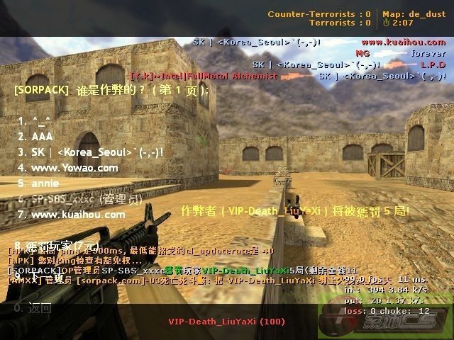 录制者:3t 嫌疑人:VIP-Death_LiuYaXi 时间:2011年08月01日 01:21:35 服务器:[sorpack.com]-03死亡死斗服(IcE.DraGon) 地图:de_dust