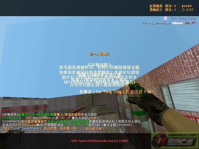 2011-5-13 18:46:00【72抓人躲猫猫(SecKill.Any)】会员VIP-IamisGG购买OP权限把玩家Cst`Tong Tong惩罚5局