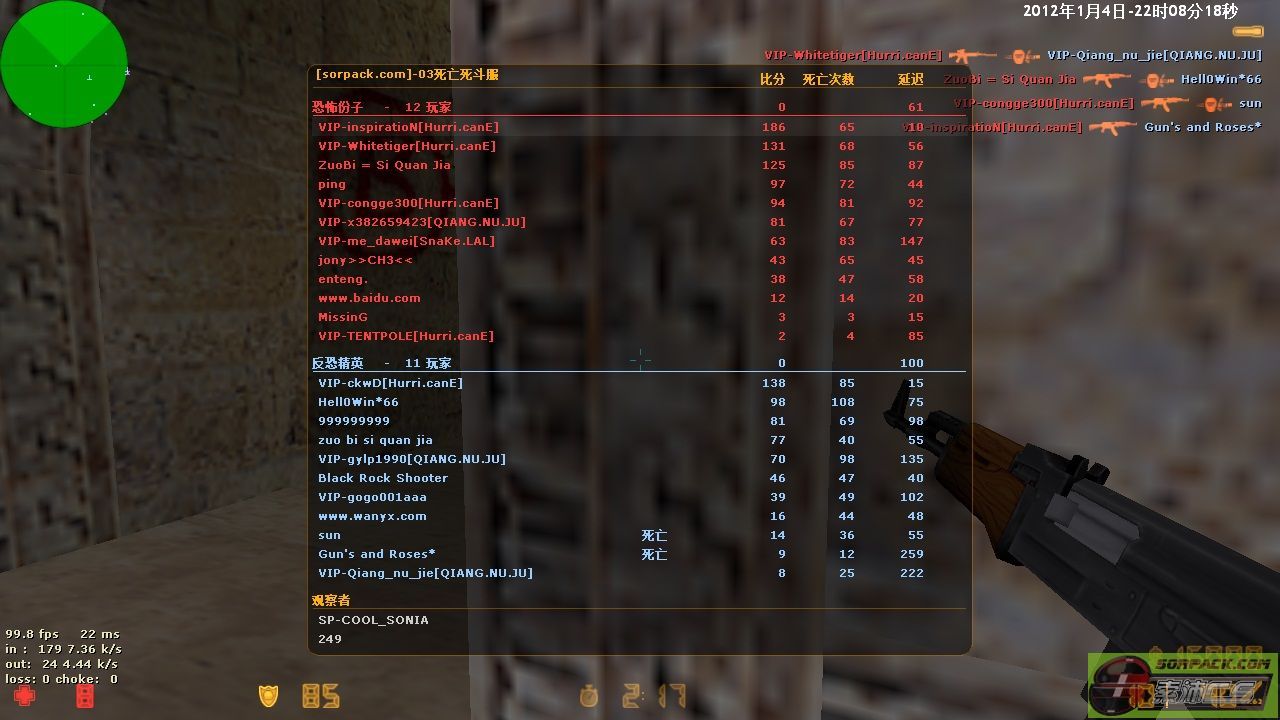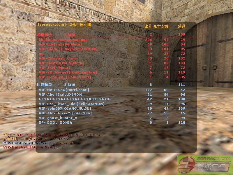| 以文本方式查看主题 - 索沛CS1.6论坛 CS反作弊 CS1.6下载 amxx sma插件 cs对战平台 (http://go5w.com/index.asp) -- Hurri.canE (http://go5w.com/list.asp?boardid=108) ---- 【Hurri.canE】战绩排行榜(7.7 晚更新) (http://go5w.com/dispbbs.asp?boardid=108&id=1129563) |