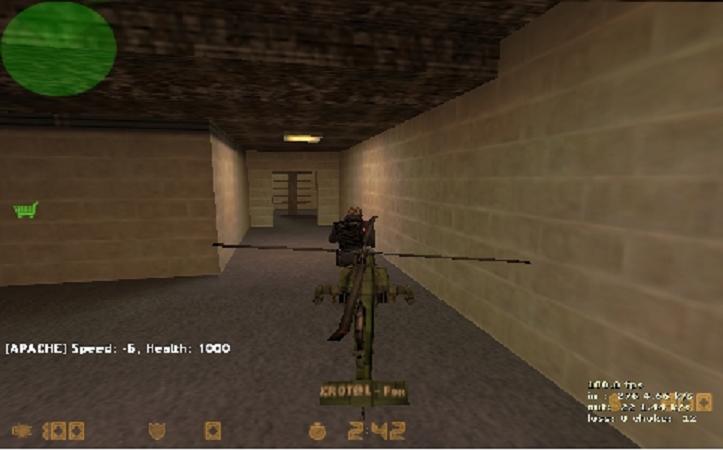 相关配置: // 插件开关 apache_active 1 // 直升机的生命值 apache_health 1000 // 直升机的最大速度 apache_maxspeed 500 // 直升机处于隐身模式时的能见度(范围0-255,0=完全隐身,255=正常状态) apache_stealth_amount 50 // 直升机处于隐身模式时的最大速度 apache_stealth_maxspeed 50 // 当有两个以上的玩家都开启直升机隐身模式时,二者必须等待的间隔时间 apache_stealth_regen 10 // 直升机机关枪子弹的最大伤害值 apache_bulletdmg 10 // 直升机的机关枪子弹的最大飞行速度 apache_bulletspeed 1000 // 直升机导弹的最大飞行速度 apache_rocketspeed 1000 // 直升机和主屏幕的距离(水平距离) apache_dist 80 // 直升机和主屏幕的高度差(垂直距离) apache_height 50 // 是否开启直升机的红外线瞄准器 apache_beams 0 // 直升机的价格 apache_cost 5000 // 是否只允许管理员使用直升机 apache_admins 0 // 直升机的炮弹是否会对友军造成伤害 apache_ff 0
