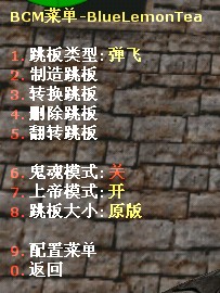 \\cstrike\\addons\\amxmodx在这个文件夹内创建一个新的名为blockmaker的文件夹 该文件夹内的文件主要是BCM跳板的配置保存文件后缀名为.bm,当你进入CS后输入say /spbm命令后选9可以读取该文件内的配置,也将你配置好的跳板保存在该文件夹内。 现在所有的安装完成了!进你的CS试试吧! say /spbm可以打开跳板插件菜单 say /spbm15可以看地图记录 [此贴子已经被作者于2009-5-3 14:15:17编辑过]