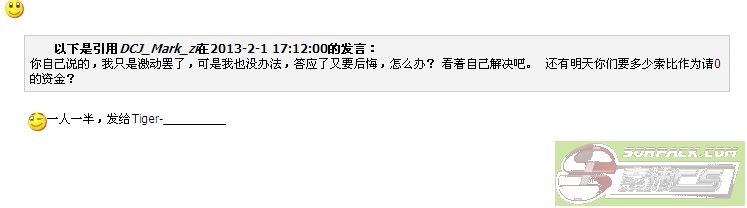 以下是引用DCJ_Mark_zi在2013-2-2 14:54:00的发言: 不要再来骚扰我们了,我们是诚信的玩家,不像你,说好的,给我版主,就是不就给我。什么意思? 不会自己开版吗?