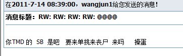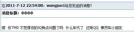 wangjun 唉 人才啊 。。。。。 以后不要短消息恶心我了 我错了 你是对的 行么?