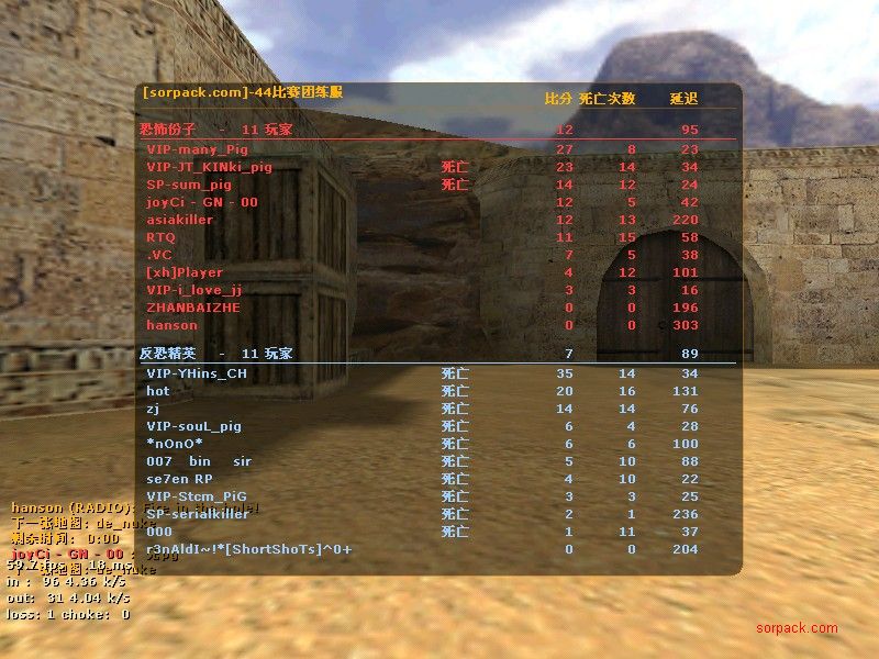 | 以文本方式查看主题 - 索沛CS1.6论坛 CS反作弊 CS1.6下载 amxx sma插件 cs对战平台 (http://go5w.com/index.asp) -- PiG.Clan (http://go5w.com/list.asp?boardid=19) ---- 菜鳥的戰績... (http://go5w.com/dispbbs.asp?boardid=19&id=93048) |