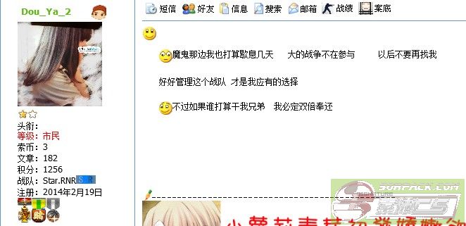| -- 作者:Dou_Ya_2 -- 发布时间:2014-08-02 22:12:00 -- 还他妈好意思跟我说不知道今天休战 干他表妹去吧