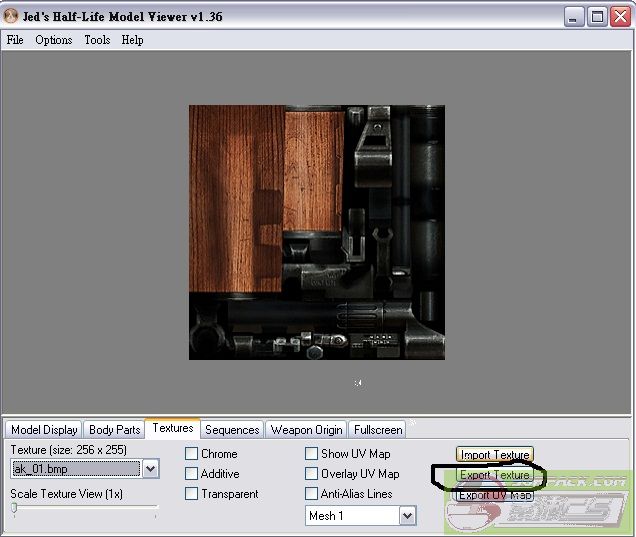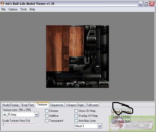 | -- 作者:sm_pig_PIG -- 发布时间:2011-07-24 19:19:00 -- [申精]CS模型改顏色 必備物品(Jed\'s Half-Life Model Viewer 1.3.6)+模組+範例:載點 中文版12.15更新:載點 開啟資料夾 此主题相关图片如下:![]() 案練習模組 此主题相关图片如下:![]() 用Jed\'s Half-Life Model Viewer 1.3.6資料夾裡面的hlmv來開啟v_ak47 (為啥不直接開hlmv 開v_ak47 因為以後改槍方便) 此主题相关图片如下:![]() 案TEXURES 此主题相关图片如下:![]() 案以上那個圈 存這張圖 再以小畫家開 此主题相关图片如下:![]() 另存新檔 存成24位元 此主题相关图片如下:![]() 再用繪圖程式開剛那張圖 比方說:GIMP ACDSee等程式 本人用ACDSee 9來示範 Q:為啥不直接編輯那張圖還要用成24位元 A:因為選擇變少 只能灰階 此主题相关图片如下:![]() 案RGB 此主题相关图片如下:![]() 好了案apply 本人全條100(其實只有亮一點) 這是條顏色 自己條吧 我可沒說一定要全條100喔!!! 此主题相关图片如下:![]() 在案HSL 此主题相关图片如下:![]() 好了案apply 本人沒有條得很好 但請大家自己條吧 本人只是給大家知道怎改顏色 所以 不好看 請見諒... 此主题相关图片如下:![]() 儲存為GIF Q:為啥不直接存成bmp A:不然等一下 稿的時候會變色 此主题相关图片如下:![]() 再以小畫家開啟 剛弄好的圖 並存成256色陣圖 此主题相关图片如下:![]() 案import texture 導入剛剛的圖 此主题相关图片如下:![]() 本人雖然做的不好 但基本上就是這樣了... 完成!!! [此贴子已经被作者于2011-7-26 17:45:38编辑过]