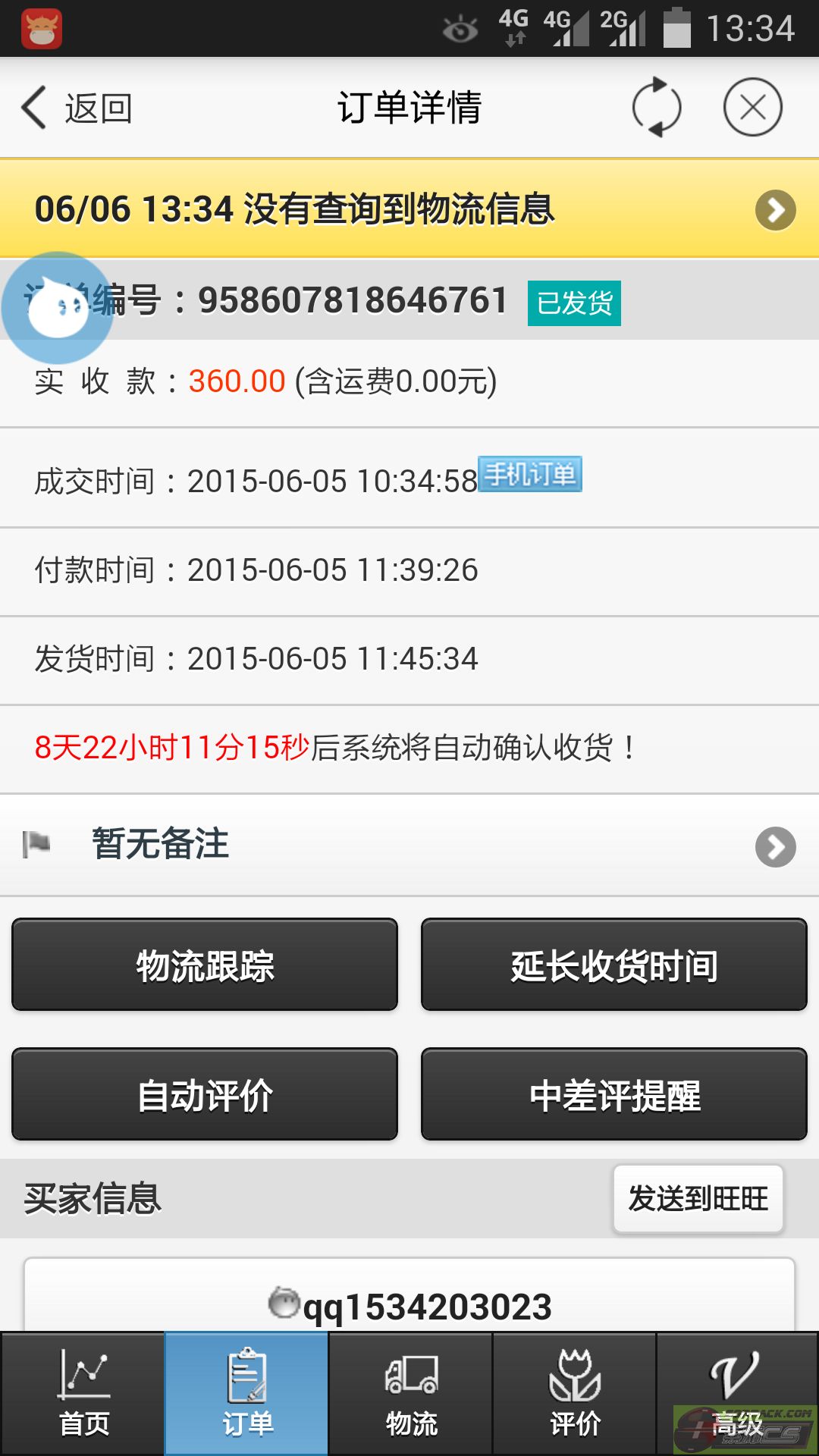 以下是引用DRAGONTIGER在2015-6-6 13:39:00的发言: 你再去看看 我想问下你看清楚了吗? 截至目前我还没收到确认收货的消息,要不要拿订单号去向淘宝客服对峙下!