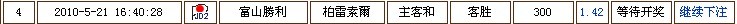 | -- 作者:A_B_C_D -- 发布时间:2010-05-21 17:58:00 -- 如果赢定了我就跟你买。 |