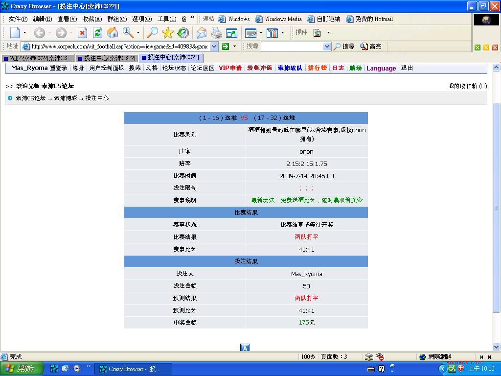 | -- 作者:Mas_Ryoma -- 发布时间:2009-07-15 10:22:00 -- [灌水]誰比我幸運~~~ 呵呵,特別號碼也猜中~~~ 早知買多點... |
