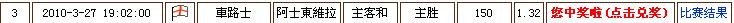 | -- 作者:Mas_Carmen -- 发布时间:2010-03-28 13:23:00 -- 昨晚on大叔说买车路士必输.. 吓我一跳..不过还是中了..!