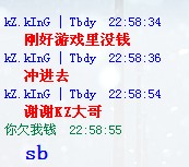 过去了 先骂你一声,sb 曾经对我帮助过的人,谢谢你。 虽然我在KZ板块里发的帖子,因为我是问过Tbdy了。 在这里我也向秒杀战队,倾国,幽灵,及pro战队一些认识我的人说一声谢谢。