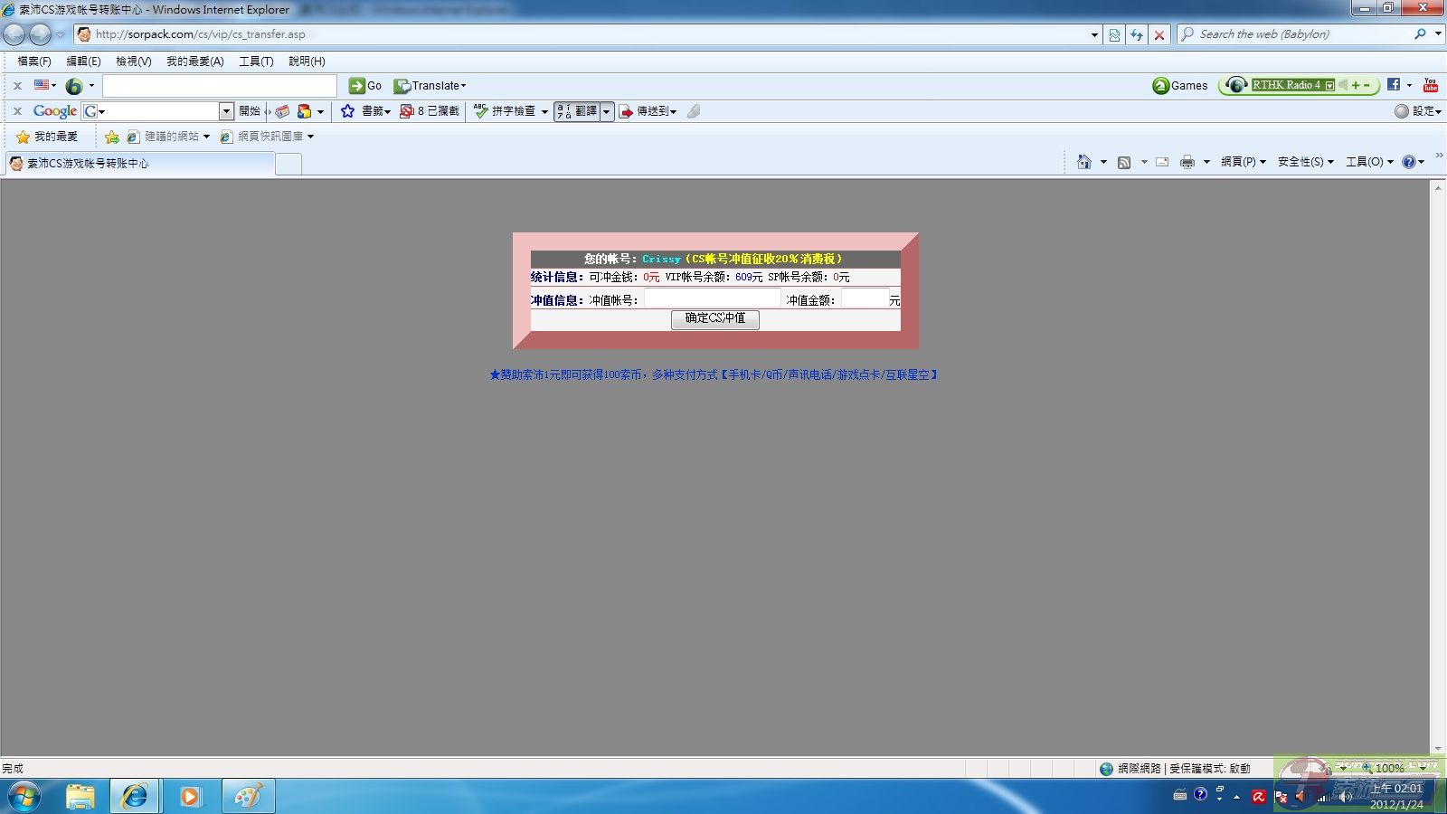 | -- 作者:Crissy -- 发布时间:2012-01-24 2:04:00 -- 今天清0了~~~~~ 索沛清0了, 拿回5元 |
