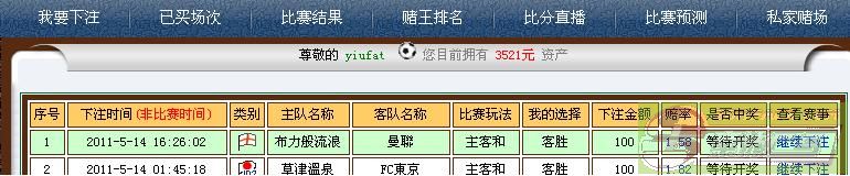 | -- 作者:yiufat -- 发布时间:2011-05-14 16:26:00 -- [灌水]Ks_wAI一起嗎 你買曼聯嗎 我隨便買了...反正我的sb都沒處可以用