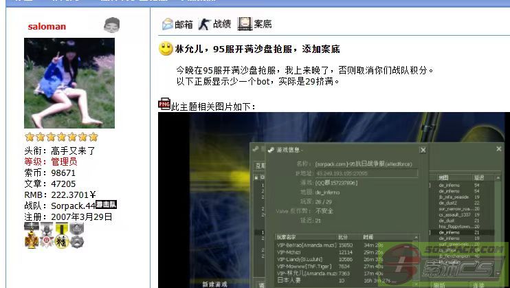 | 以文本方式查看主题 - 索沛CS1.6论坛 CS反作弊 CS1.6下载 amxx sma插件 cs对战平台 (http://go5w.com/index.asp) -- 投诉举报 (http://go5w.com/list.asp?boardid=39) ---- 39服挤满沙盘抢服 (http://go5w.com/dispbbs.asp?boardid=39&id=2635768) |