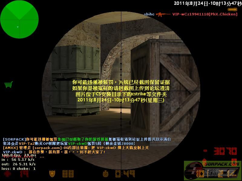 | 2011-8-24 10:14:00 | 【06内部比赛服】会员VIP-TaZ购买OP权限把玩家VIP-ckwD惩罚5局 | 上传原图OK? 自己对时间,差13S