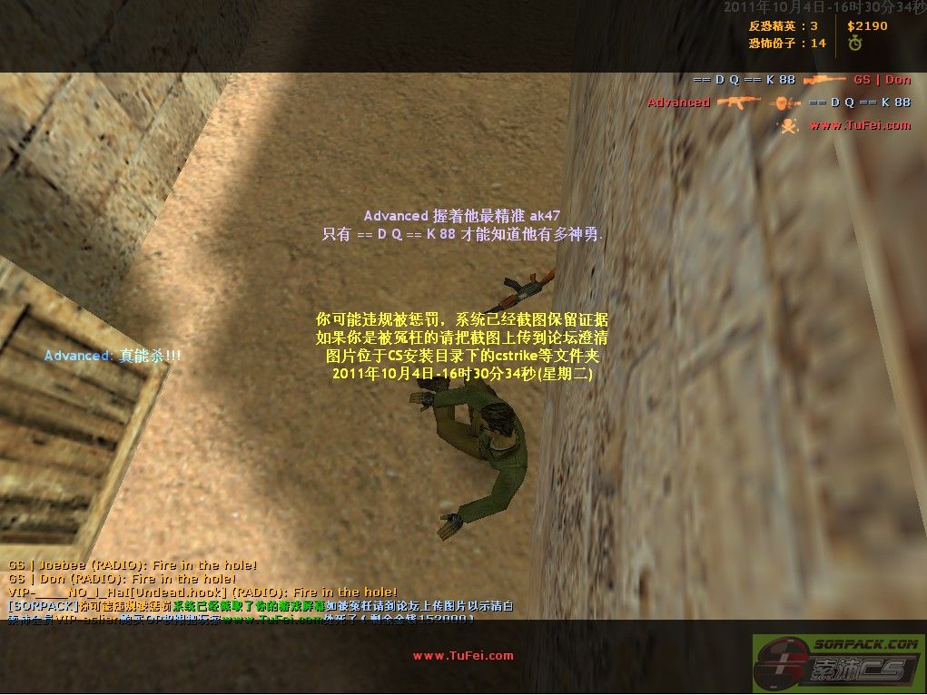 PM| 7 | 2011-10-4 16:30:00 | 【60内部比赛服】会员VIP-aslian购买OP权限把玩家www.TuFei.com处死了 |