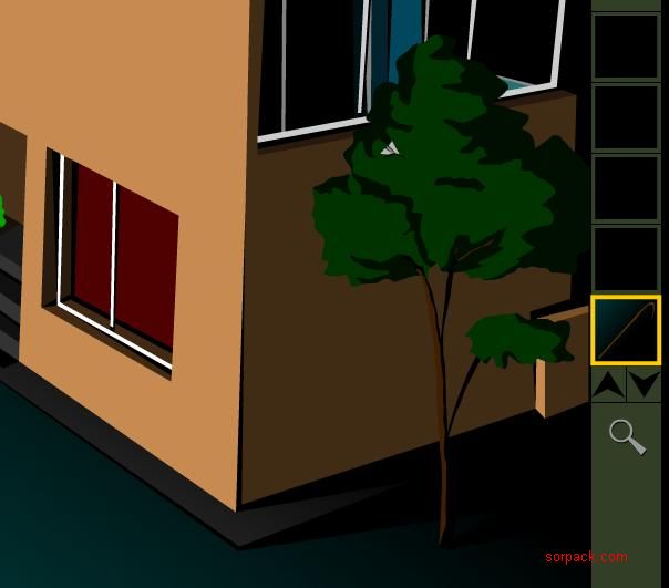 把棍子检起 来到最右图的大树 用检起的棍子就打纸飞机 打下飞机后检起飞机 用放大镜去看飞机里的密码 在门上的密码锁中 输入纸飞机里的密码 开门进屋 进去这里 拿了打火机后离开 上到3楼 进去这个门 可拿到浅兰色钥匙 进去对应颜色1楼中的那个门 要点中钥匙后 才能使用钥匙 花瓶中可拿到灰色钥匙 然后离开 进去灰色的门 这里有把要是可开旁边的门