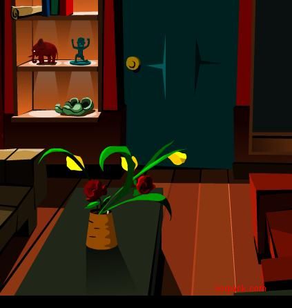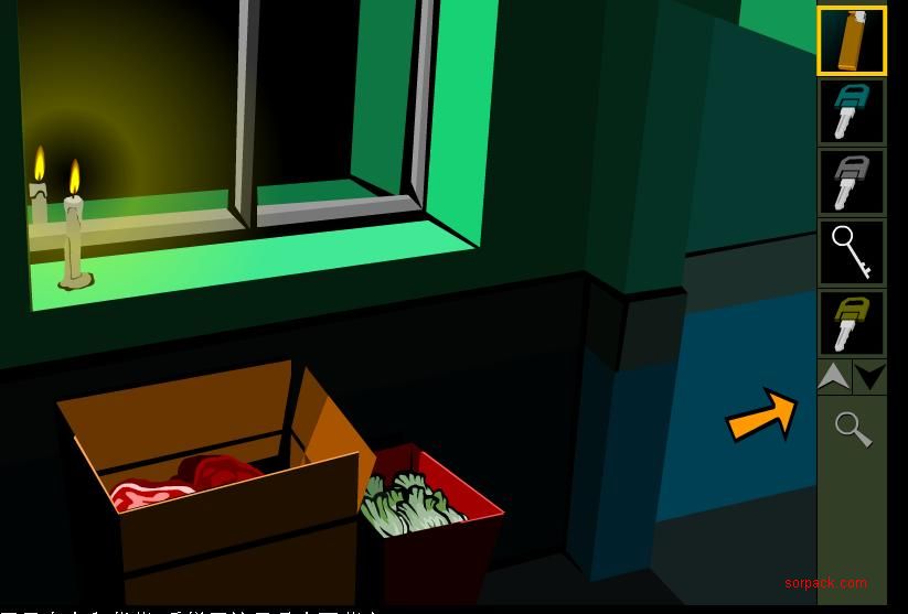 这里面可拿到浅黄色钥匙 离开 会发现狗被人放开了 再回到花瓶的屋 少了个叼象 你会发现 出不去了 门都被锁了 拿浅黄色钥匙进去这门 往右左走来到这里 用打火机把蜡烛点燃 然后在箱子里可取出肉片