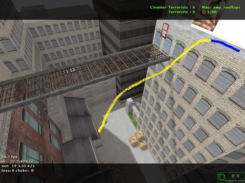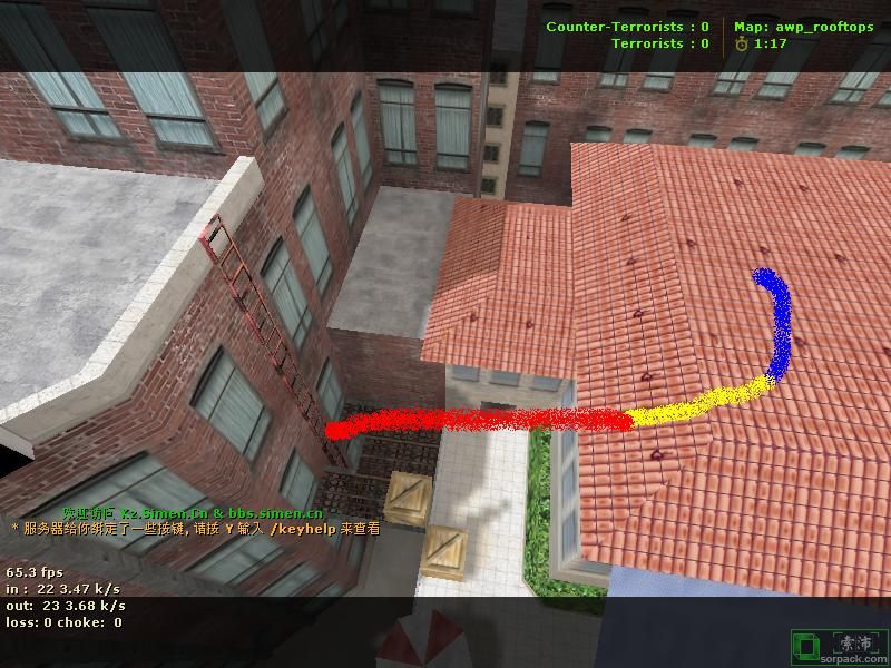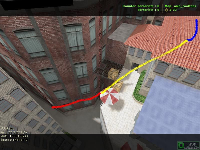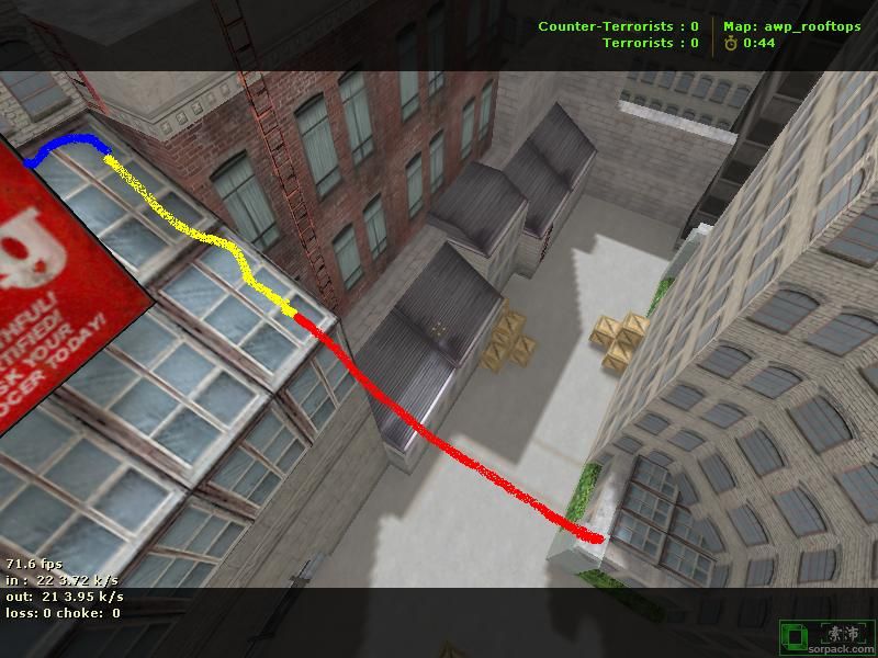 | -- 作者:ReD_BuLL -- 发布时间:2009-11-29 21:02:00 -- 看看下wr又有靈感了:HNS路線 藍色為助跑 黃色為起跳/彈跳加速 綠色為小跳 紅色為向前 利用斜面加速撞梯 其他的自己領悟吧 [此贴子已经被作者于2009-11-29 21:11:09编辑过]