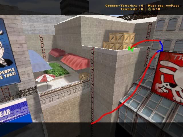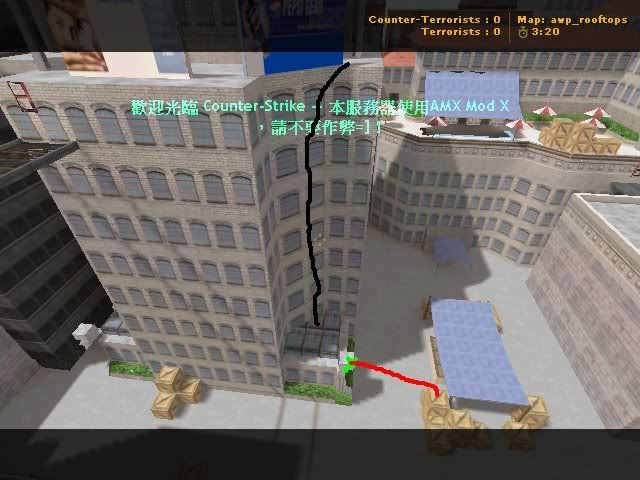 | -- 作者:chowkin00832 -- 发布时间:2009-05-05 19:48:00 -- 技術大臣[我]要教大家awp_rooftops的跳位[第1次更新] 綠色代表起跳點 紅色代表路線 藍色代表使用BHOP 【P.S這跳法是用BHOP的】 圖1(這是我自己創作,支持!!) ---------------------------------------------分割線--------------------------------------------- 【P.S這些跳法是用HJ的】 圖2 圖3 圖4 By:ChOwKiN00832(NuB) [此贴子已经被作者于2009-5-5 21:10:22编辑过]