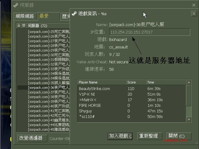 输入connect 和服务器地址 这就是hltv录的demo.文件比一般的demo大,用hltv要抓作弊的很容易,尸服的我的hltv进不去,我录的是对战服的,没看过hltv的可以下载看看。 点击浏览该文件[此贴子已经被作者于2009-10-5 05:54:34编辑过]