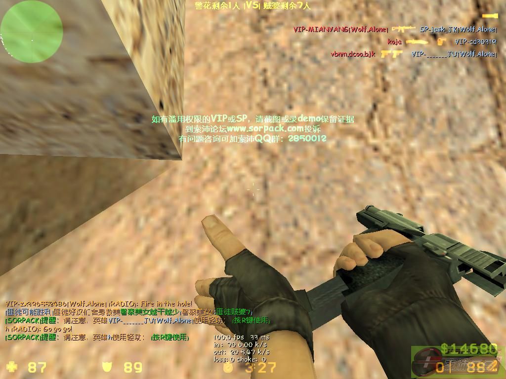 | -- 作者:MianYang -- 发布时间:2010-08-07 23:14:00 -- 【讲古仔】美好的一天——8月7日~~~~~~~~~~~~ 故事可能太长,请做好心理准备~~~ 晚上8点50分左右。。。 一场激烈的决斗在78悄然发生了~~~ 狼族队员们不知所措,但最终还是冷静下来,紧急呼叫支援~~~ “绵羊妹妹,快去78!!!” “什么事。。。” “你去了就明白啦~~~” 这样的话语,让我不寒而栗。。。 刚睡醒的我,迅速地进入了我们的“家园”——78服。。。 哈,GA们几乎占了半个屏幕~~~ 我一看~~~哇~~~吓死我了。。。 看到这种情况,我产生了退缩的念头。。。 “看来是守不住了,明天再来吧。。。” 我万般无奈的说出了这句话。。。 但是,队友们却没有一个理我~~~似乎在嘲笑我那临阵退缩的表现呢~~~ 坚持,就是胜利~~~无论我的战绩是多么的惨,我永远记住毛主席的一句话: “打持久战,绝对胜利” 我的信心,立即像火焰般燃烧起来~~~ 爆头率75%~~~ 枪爆头,看见血,才是爽。。。 兴奋中,却不小心把我亲爱的JK哥给宰了~~~ --------------------------------------- 时间是过的这么快~~~ 转眼间,地图从de_aztec到de_dust了~~~ “哇,这图虐人准爽~~~”我自言自语道~~~ 一瞬间,枪声四起,重新开始了一场全新的战斗~~~ 而此时,用意是来进攻78服的GA们迅速逃离~~~ 虽然GA们走了,但我们虐人的激情仍然存在。。。 我抓紧时间,争分夺秒,用轻便的MP5指向敌人的头;用弯弯的大刀飞向敌人的头~~~ 就这样,一张全新的战绩图新鲜出炉~~~ KILL 199~~~ ~~~The END~~~ PS:JK哥快点给我发50SB(难得杀你一次啊- -)+145SB(战绩图奖励)+35SB(文笔)~~~ [此贴子已经被作者于2010-8-7 23:32:46编辑过]