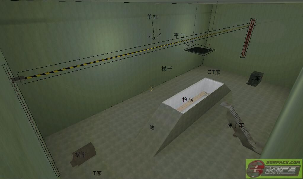 | -- 作者:muzi_Angel -- 发布时间:2014-03-24 19:10:00 -- 地图详解之——atomics_ka_roadwars_final 地图概况: 飞刀图中的最复杂的地图,全地图按钮非常多。 TMP的透明枪房可以开梯子过去,也可以开J车上斜坡然后下来,高度应该正好能进去。里面左数第六个按钮是开门的按钮,用枪打没用,必须按E。里面拿TMP的地方数4X4的方格,那个按钮就是拿TMP的按钮。 [此贴子已经被作者于2014-3-24 21:10:03编辑过]