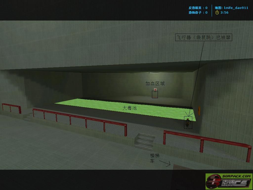 | -- 作者:muzi_Angel -- 发布时间:2014-03-24 19:10:00 -- 地图详解之——knife_dao009 地图概况: 这张地图的上方有旋转的杆子,需要技术比较好的人才能过去。T家有帽子车,可以飞车,直接飞到对面CT家,来个突如其来的打击。或者飞到CT家上方的横杆,去拿枪。 TIPS:这个地图只有散弹可以拿,还是靠飞刀吧! 技巧:T家【注意!只有T家有!!CT家没有!!】下面有一个隐形平台,不知是地图BUG还是制作者故意设计,下去不会死。但是切记不能蹲,一蹲就掉下去了。(会有人说怎么T家的梯子怎么上不去,只要在梯子上蹲着走就行了。) 地图详解之——knife_dao911 地图概况: 地图有一个可以加血的地方,要开车才能过去【8L详解】。卡血的话跳蹲几率比较高,当你发现一直在飙血且血量在飞快的变化时说明卡血成功了。加完血以后摔不死,枪也打不死,飞刀能弄晕你但打死你要很久。别以为就无敌了,加血有一个最大的克星:脚T。被敌人T了以后血量是按照显示的残余血量计算的。 技巧:加了血以后可以拿枪房里的大狙【如果没加就秒杀】。 [此贴子已经被作者于2014-3-24 20:48:24编辑过]