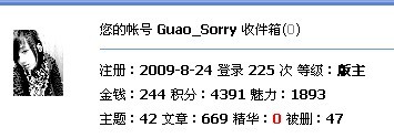 | -- 作者:guao_xiuxiu -- 发布时间:2010-01-28 11:17:00 -- 小叶,走别人的路,让别人无路可走! |