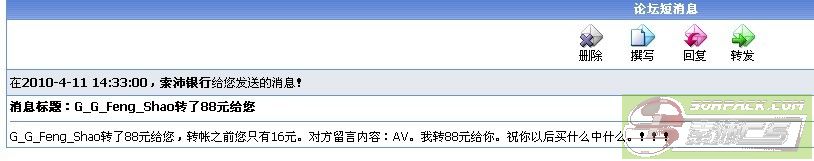 这将成为历史了吧。我知足了。 PS:请一些朋友们,不要转钱给我了。因为我手贱。呵呵,还是祝你们以后赌什么中什么吧。谢谢了。 (as2009和DJ的$$看来我是没钱还啦,别介意哈…… -_-!) BY.AvaNt 2010.04.11