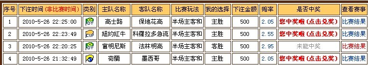 哇...都系赔率2点多的.. LZ好厉害啊(开玩笑的)