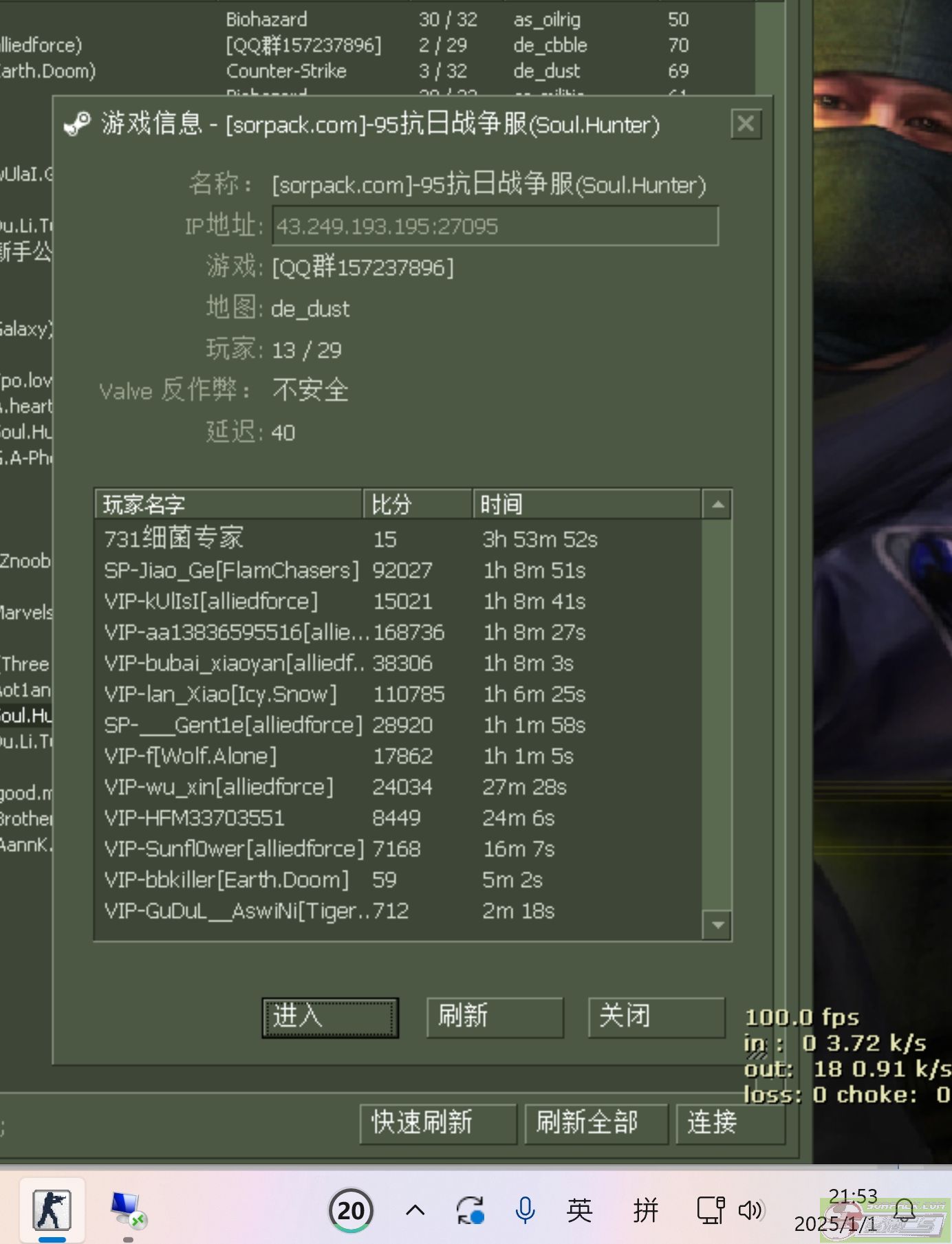 估计是里面的人砸枪太猛了,导致外面的人进不去了,我也进不去。不过好像他们在里面也没踢出来,估计正版的更新了最新版本的才能进入。