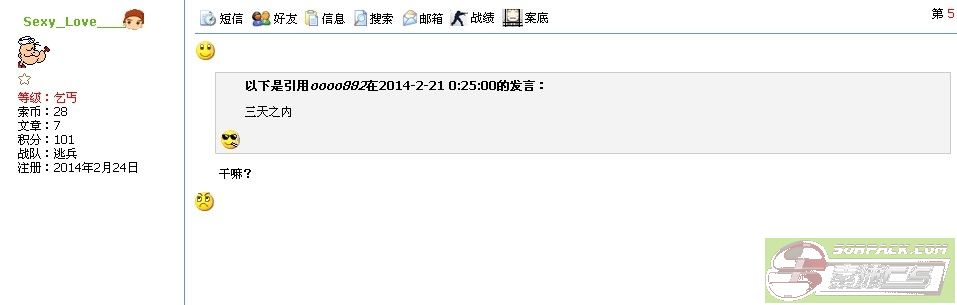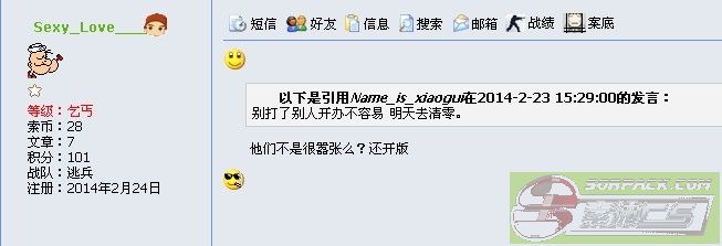 这几天玩得比较猛,可能惹到了某些守服的人,心有不服,想诋毁我,在解放大厅还拿以前的旧事出来咬人。现在又模仿我的ID到处乱喷屎。
