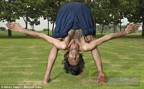 印度一位年輕男子有“橡膠人”之稱,他的身體柔韌性極好,能夠輕易地將腿盤在頭上,扭動身體便能穿過一張網球拍