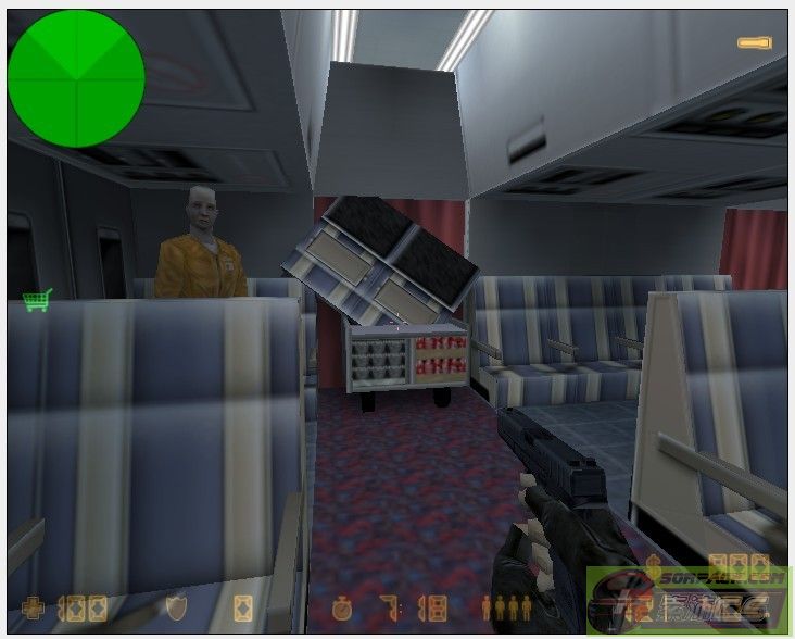 可以出去飞机的外面,先在机顶,对准这个围栏,鼠标稍像右移,然后滑下去。可以发现并没有掉下去,而是卡住了,接着你慢慢向外移动就行了