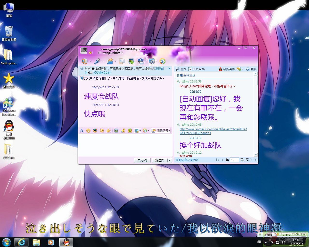 | -- 作者:Shugo_Chara -- 发布时间:2011-06-16 17:18:00 -- 別再扯蛋了,是我叫wangjun踢我的。