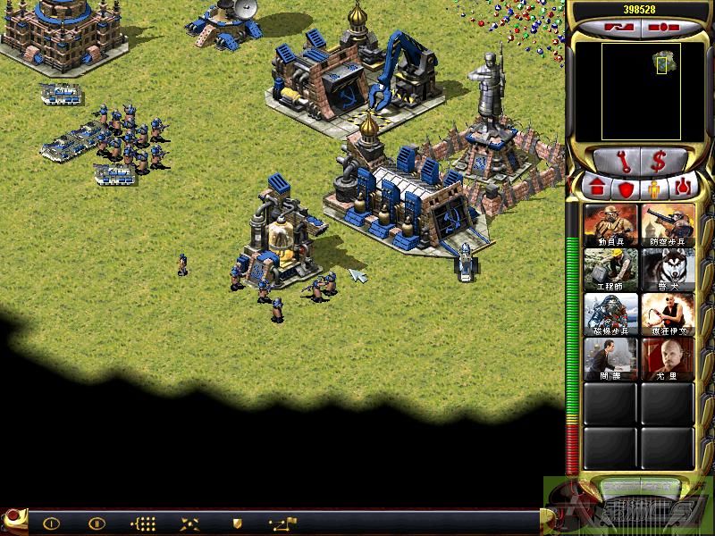 从题目来叫是来介绍一种高级货的,现在进入主题。首先你要是苏俄,伊拉克,利比亚中的1个。然后造个防空履带车(500¥),5个动员兵,1个疯狂伊文。如图