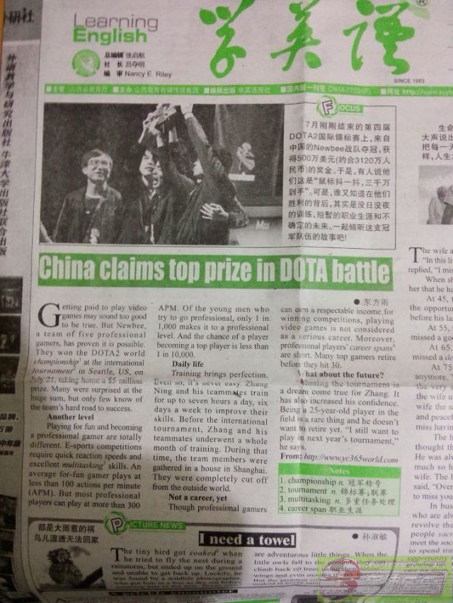 -- DOTA2上了英语学习报?