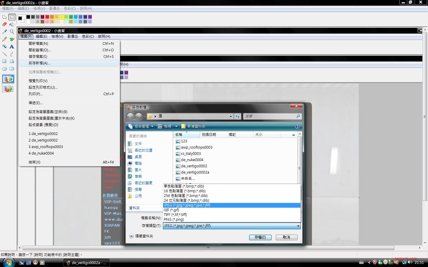 1.先在小畫家上傳你的圖片 (在你的DcOo CS1.6檔案/cstrike_schinese)