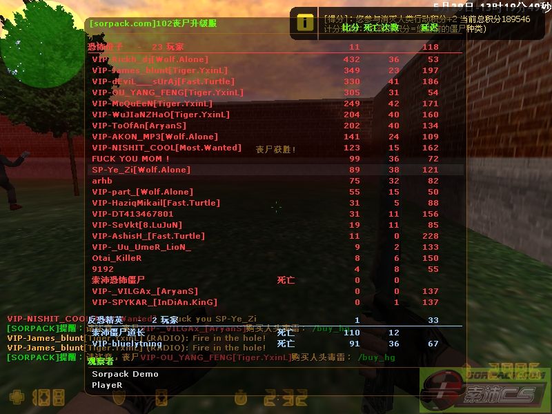 【102丧尸升级服】管理员SP-Ye_Zi[Wolf.Alone]把玩家VIP-NISHIT_COOL的臭嘴封住了