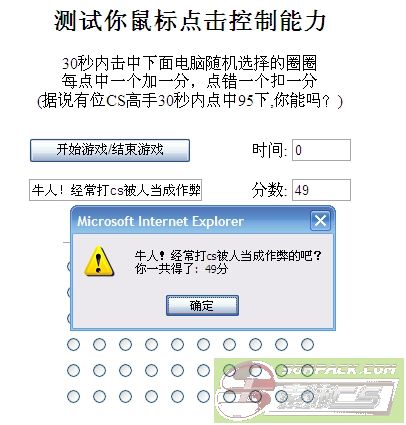 30秒内击中下面电脑随机选择的圈圈每点中一个加一分,点错一个扣一分(据说有位CS高手30秒内点中95下,你能吗?)