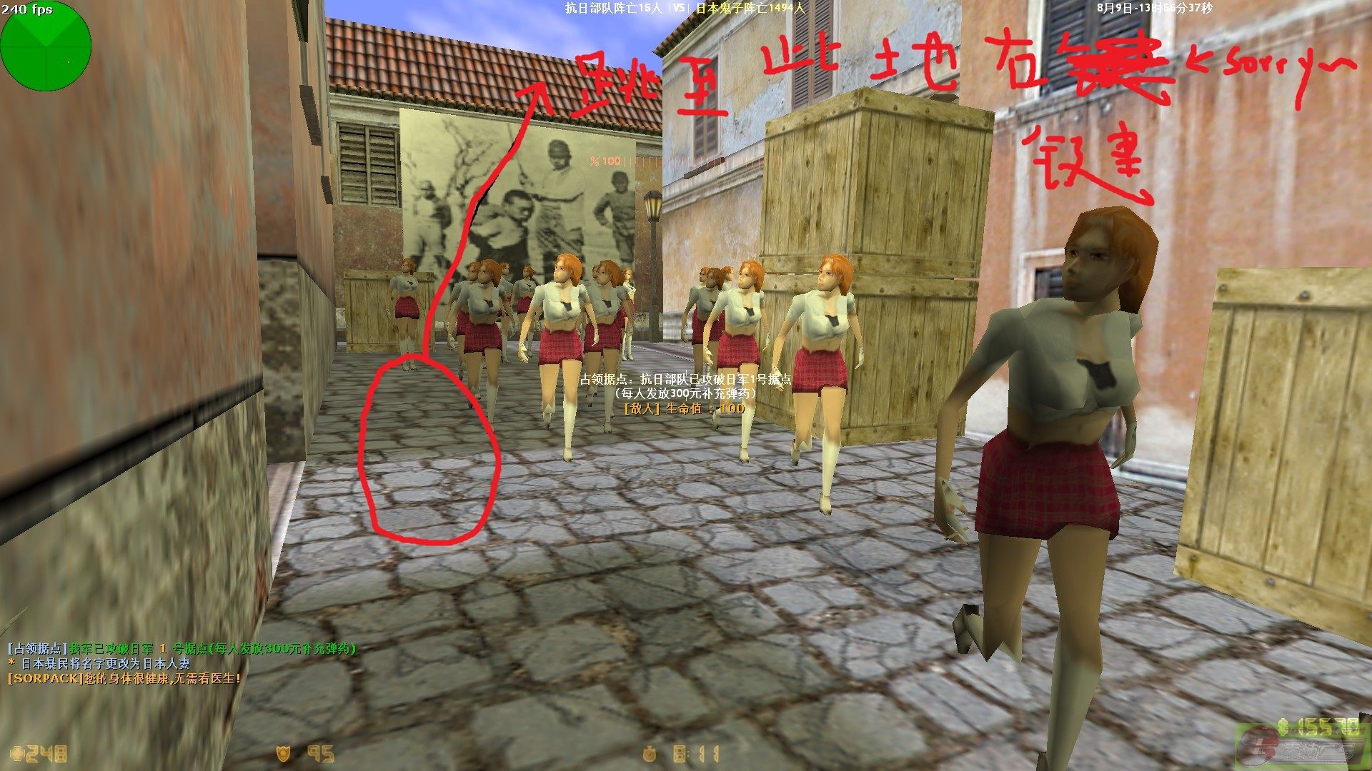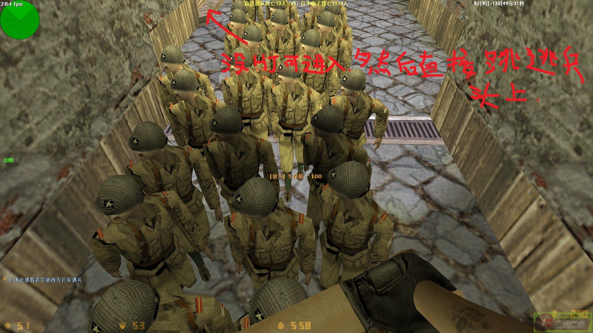 刷刀刷多了,更会注意从哪个位置,哪个方向进攻能抢更多的分.通常,在鬼子头顶蹲着,或蹲跳最高点时放威力最大,跳上鬼子头顶很简单,直接冲过去再他们没碰到你之前抢先跳就OK了.作战部队据点对刀的伤害是很大的,我曾经3胜被围攻200HP一下变50.所以对作战部队据点尽量跳他们头上打.伤害最小,而且少和汉奸纠缠,用更多时间刷分.