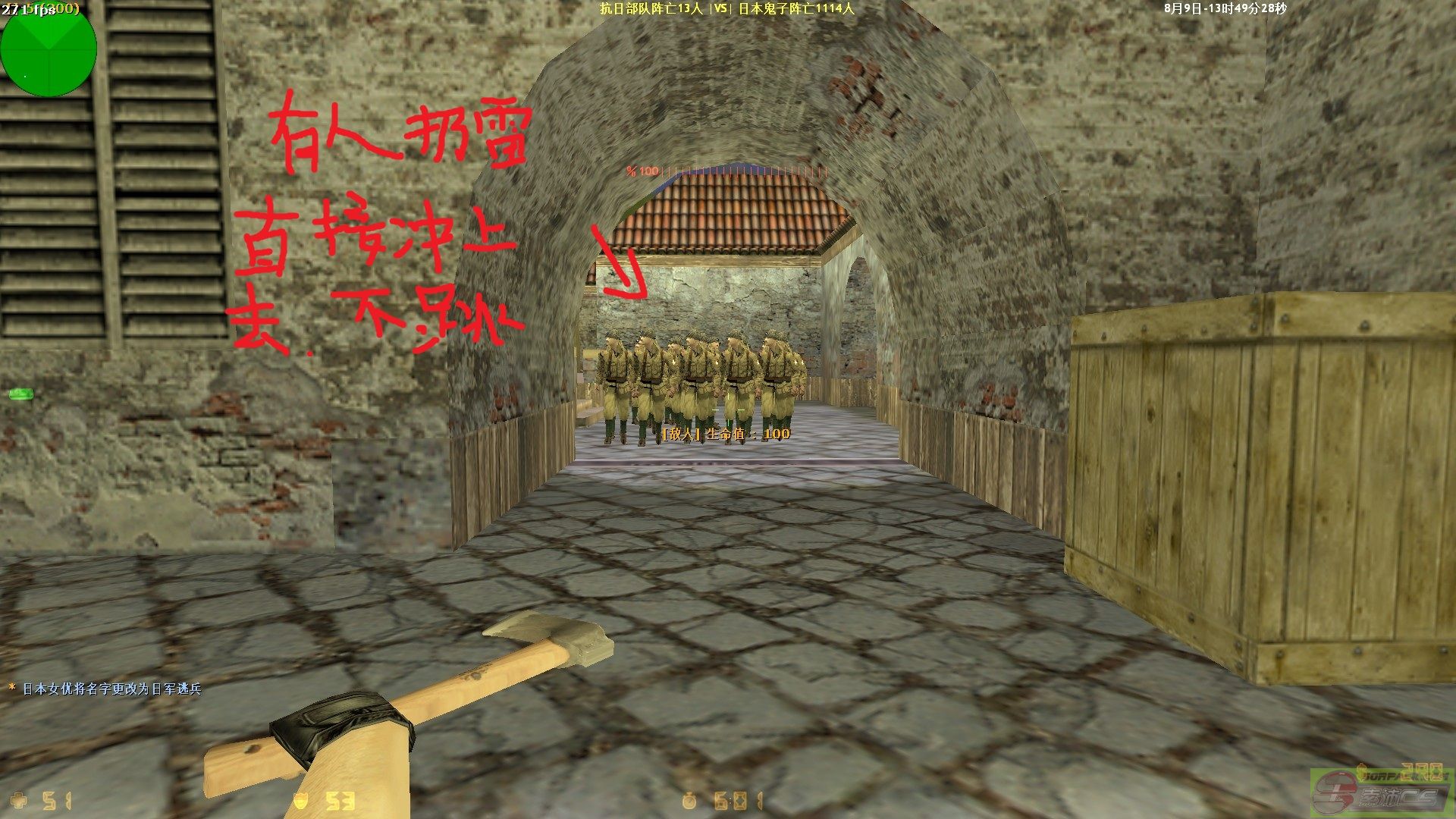 有人扔雷,直接冲进去右键.没人扔雷,跳头顶蹲下右键.