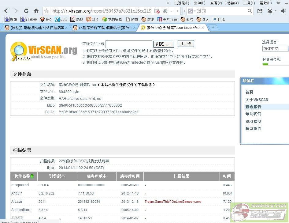 查毒地址:http://www.virscan.org/ 非广告哦