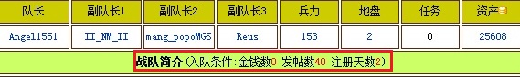 14. Into the team condition (Default value: 0 Money, 40 Post and 2 Registered days)