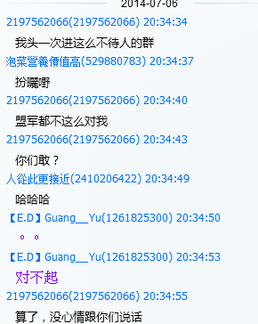 | 12 | 2014-7-6 22:41:00 | qq525202773把qq2197562066踢出战队 |