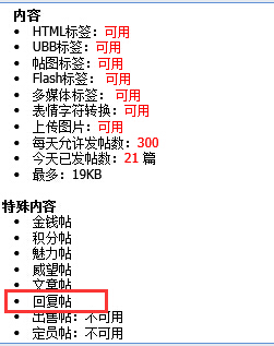 到左方的 特殊内容 点选 回复贴