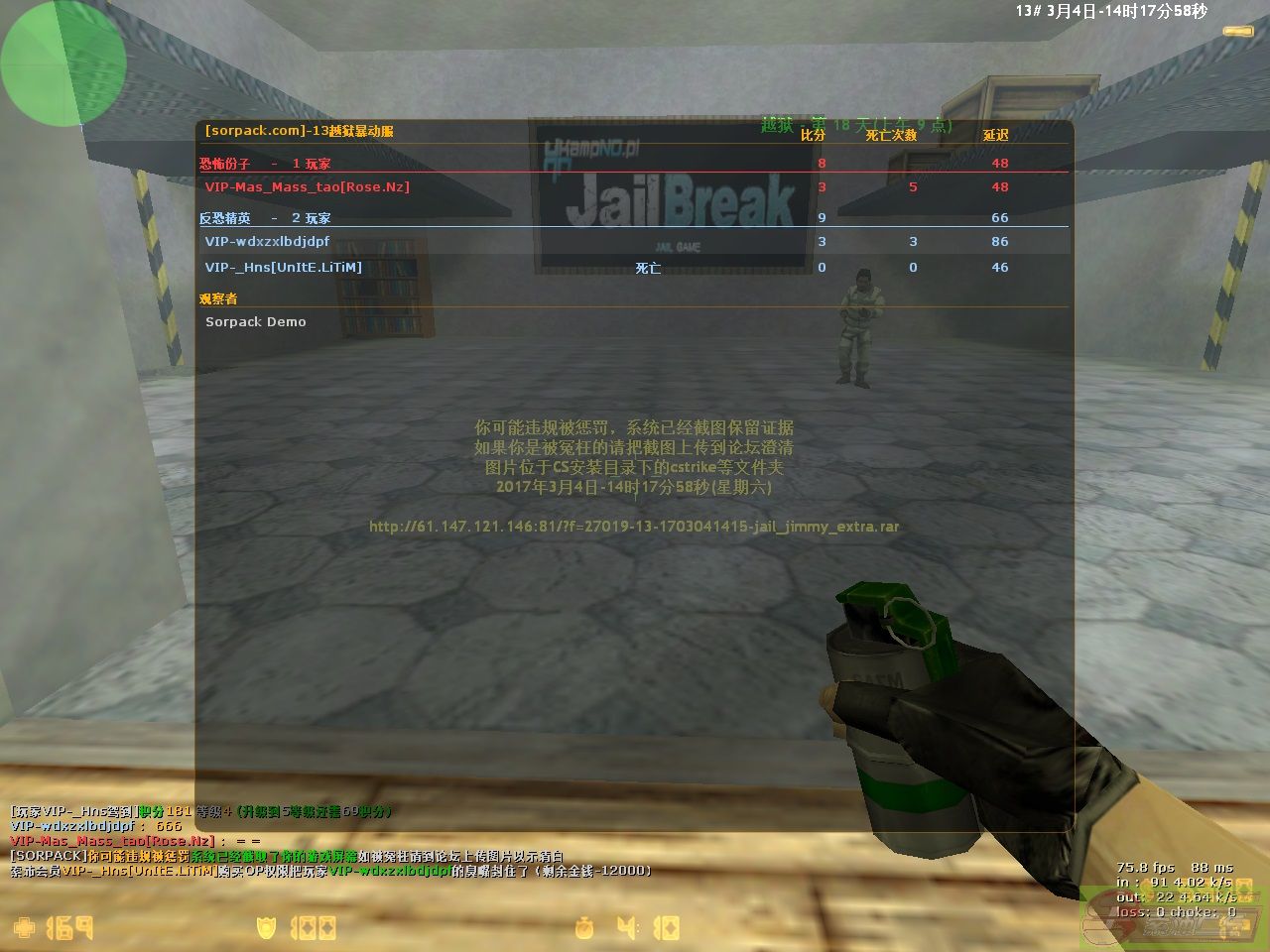 | 88 | 2017-03-04 14:11:00 | 【13越狱***服】会员VIP-_Hns[UnItE.LiTiM]购买OP权限把玩家VIP-wdxzxlbdjdpf的臭嘴封住了[Demo] |
