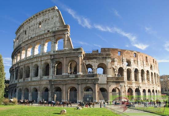 Colosseum : The Colosseum or Coliseum, also known as the Flavian Amphitheatre (Latin: Amphitheatrum Flavium; Italian: Anfiteatro Flavio or Colosseo is an oval amphitheatre in the centre of the city of Rome, Italy. Built of concrete and sand, it is the largest amphitheatre ever built. The Colosseum is situated just east of the Roman Forum. Construction began under the emperor Vespasian in AD 72 and was completed in AD 80 under his successor and heir Titus. Further modifications were made during the reign of Domitian (81–96).[4] These three emperors are known as the Flavian dynasty, and the amphitheatre was named in Latin for its association with their family name (Flavius).