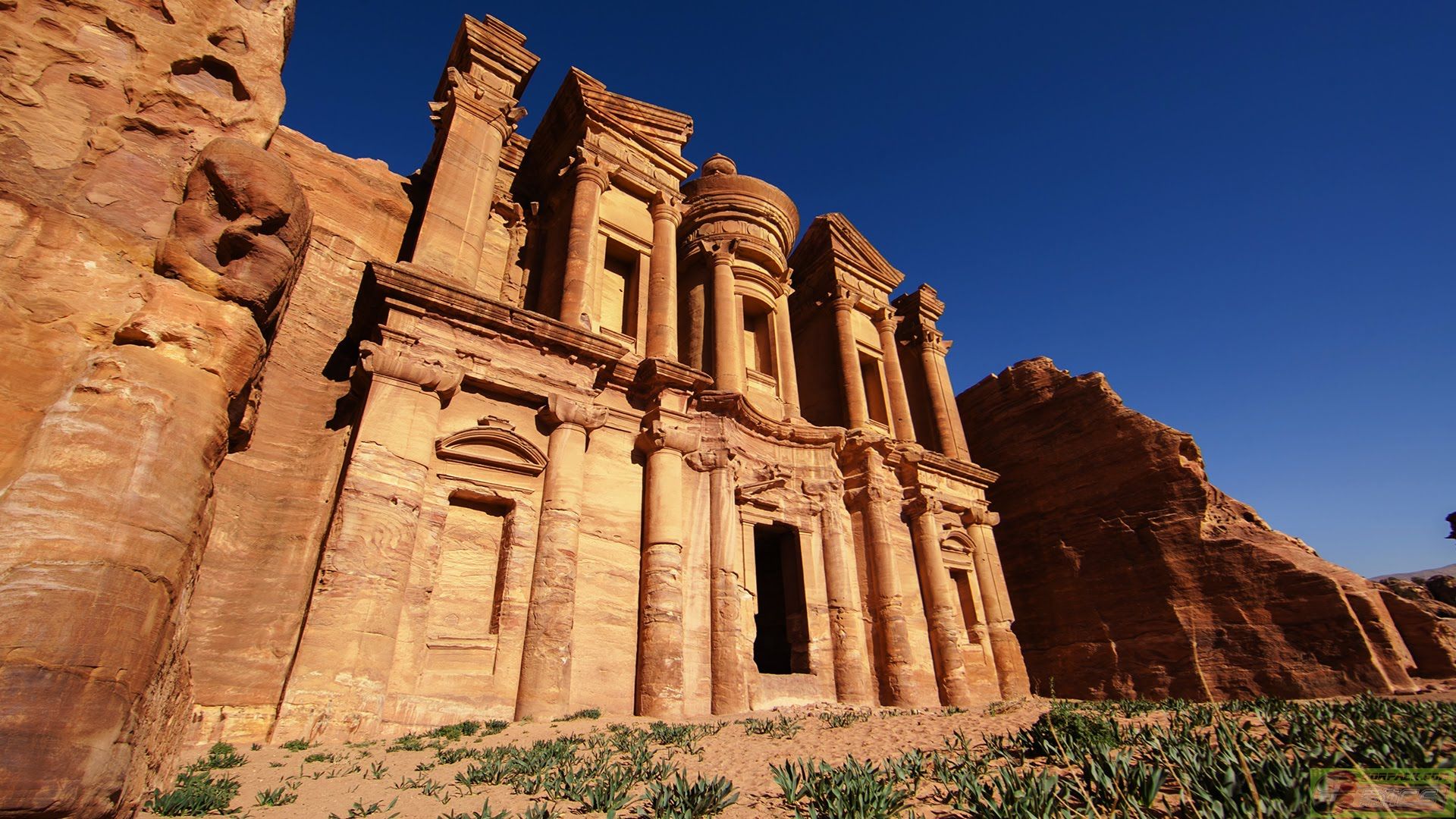 Petra : The city is famous for its rock-cut architecture and water conduit system. Another name for Petra is the Rose City due to the color of the stone out of which it is carved. Petra is one of the 7 wonders of the world.
